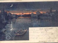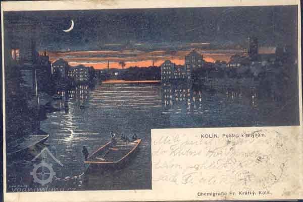 Pohled na mlýny v Kolíně v noci (viz aukro.cz), nedatováno, © autor neznámý