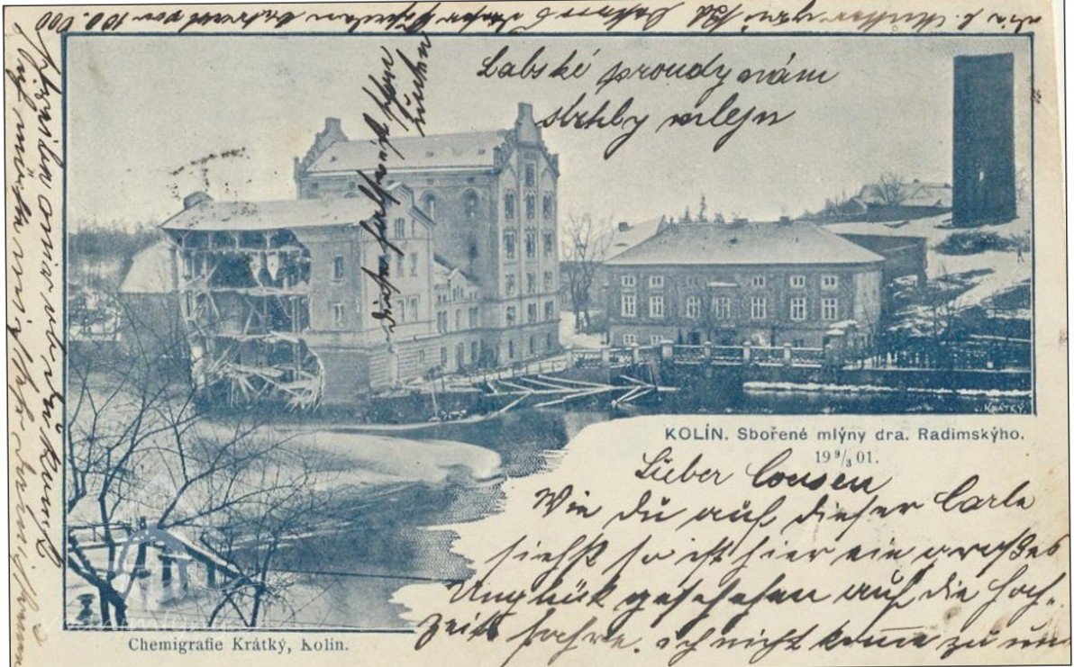 Pohlednice kolínských mlýnů, 1912, © foto Josef Bartl vydal J.Kaška (Jan Heřman - Archiv Posázaví)
