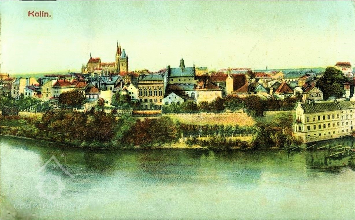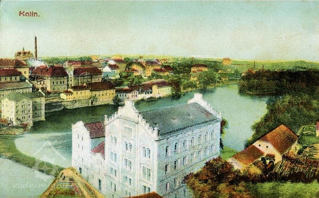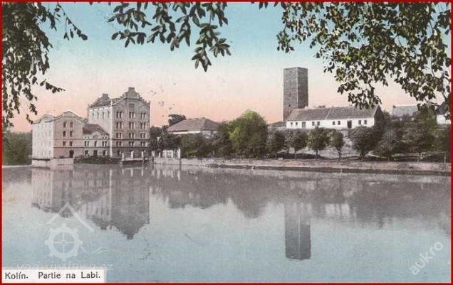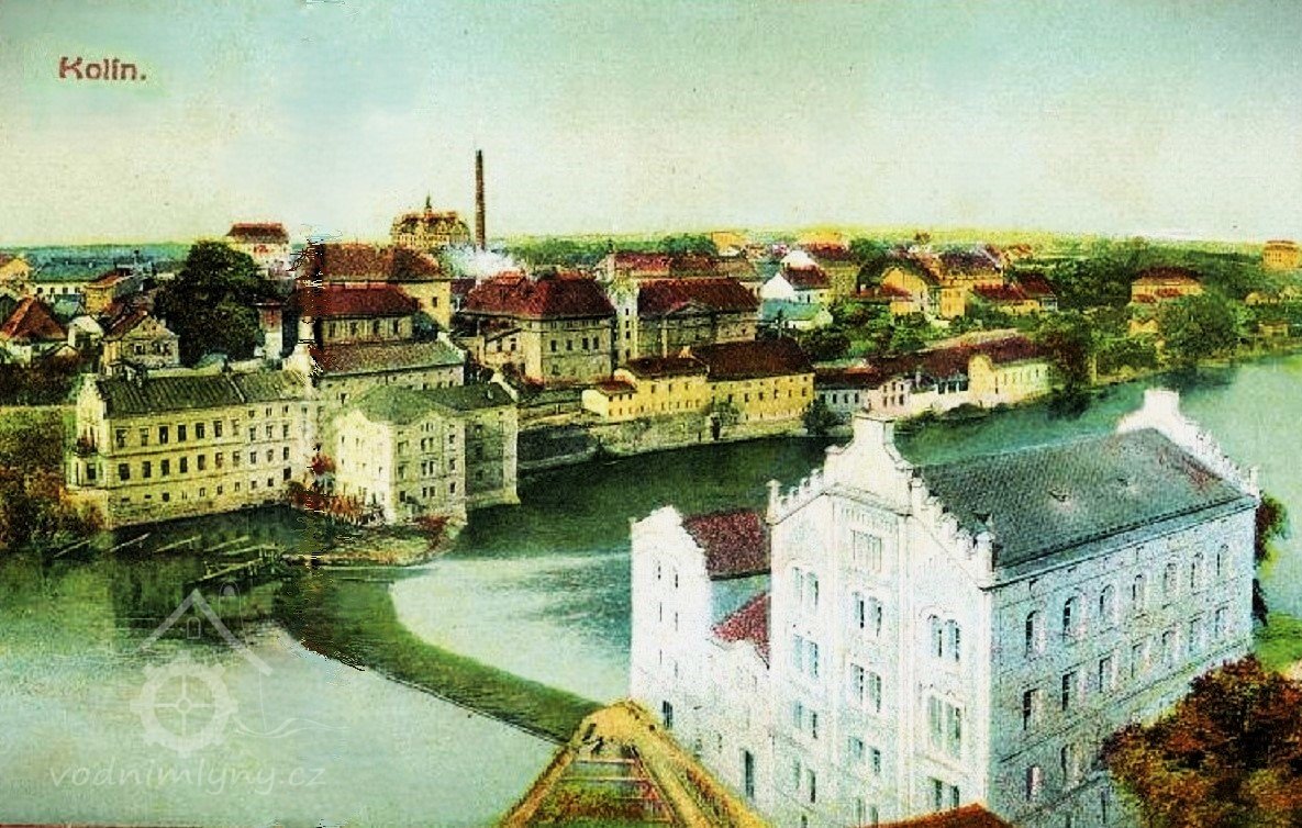 Panoramatický pohled Kolína s mlýny, 1911, © Josef Bartl vydal J.Kaška v Kolíně (Jan Heřman - Archiv Posázaví)