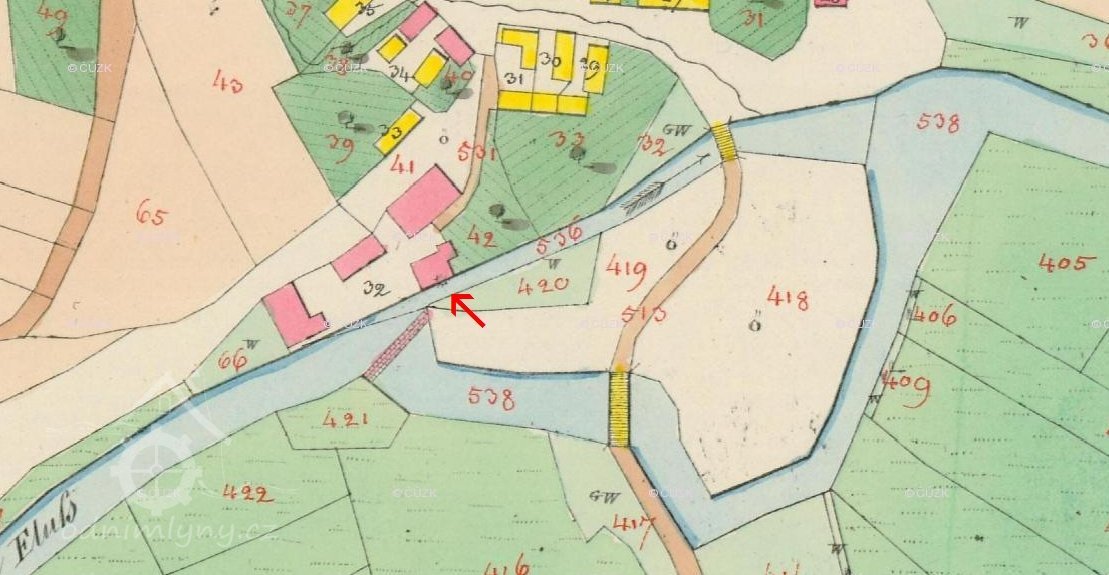 Popis1930: 1 turbína Francis, hltnost 3,5 m3/s, spád 1,5 m, výkon 50 HP