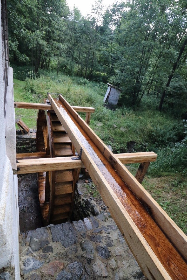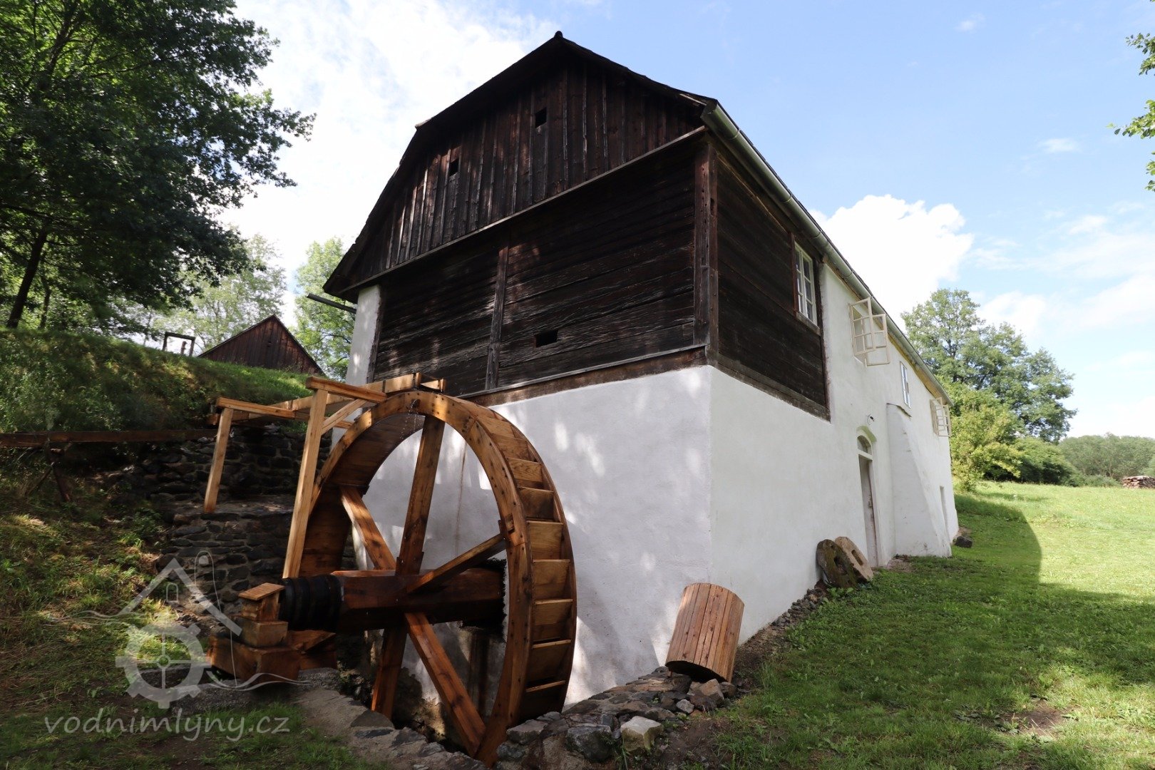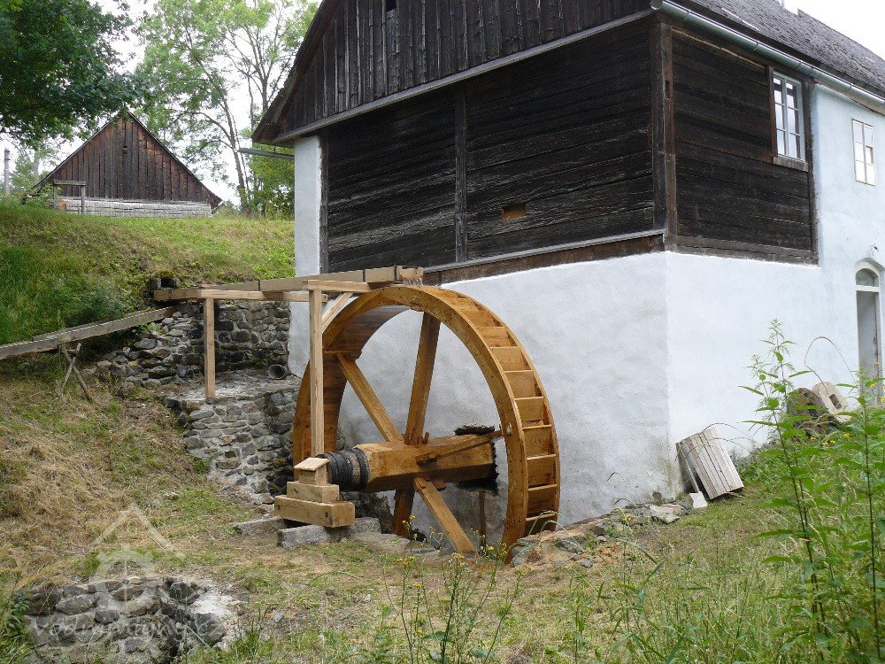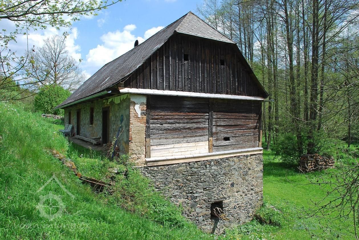 klasicistní mlýn z konce 30. let 19. století, vystavený s použitím starších roubených konstrukcí z poč. 18. stol.