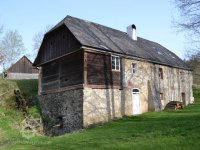 zděná stodola s roubenými výplněmi a rybník s podkovovitou sypanou hrází. Zbývající části vodního