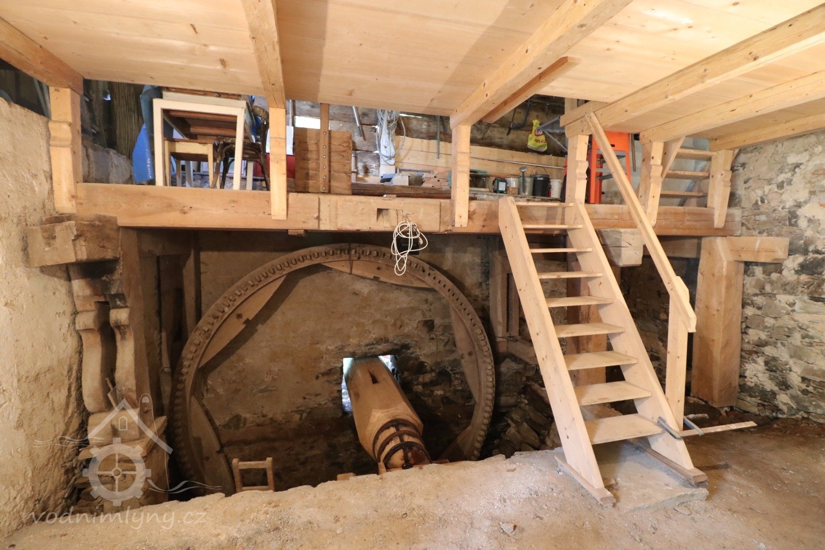Jihovýchodní a jihozápadní stěna vrchního podlaží mlýnice je rovněž roubená do drážky, z druhotně použitého dřeva z let 1727-29. Nad celým domem je jediná podkrovní prostora polovalbové střechy, systému stojaté stolice, přesahuje nad zápražím. Spoje jsou čepované, jištěné dřevěnými kolíky - hřeby, veškeré dřevo j ručně opracované. Trámy krovu byly zhotoveny z jedlí kácených na přelomu let 1833/34.