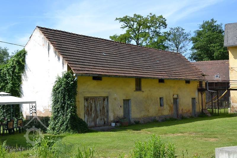 Zděná stodola nad obdélným půdorysem, stojící v blízkosti mlýnice. Běžná zemědělská stavba datovaná ve štítu do r. 1904, v jejímž zdivu je řada druhotně užitých prvků (mlýnské kameny) a která snad stojí na místě původního středověkého mlýna.