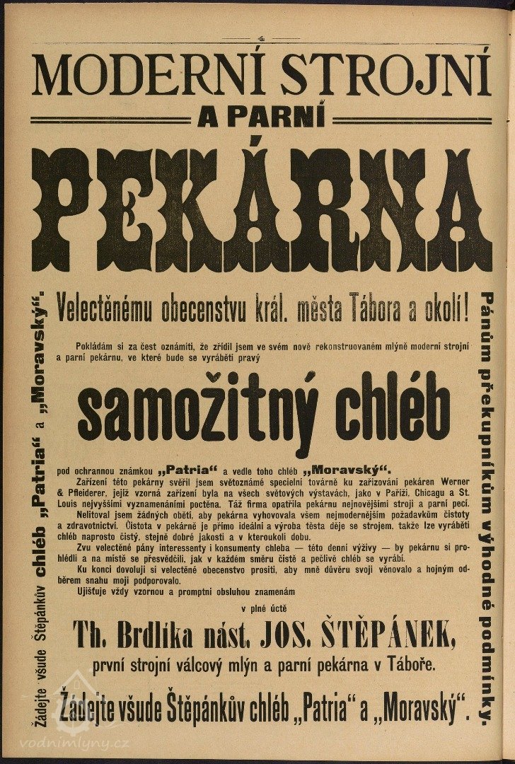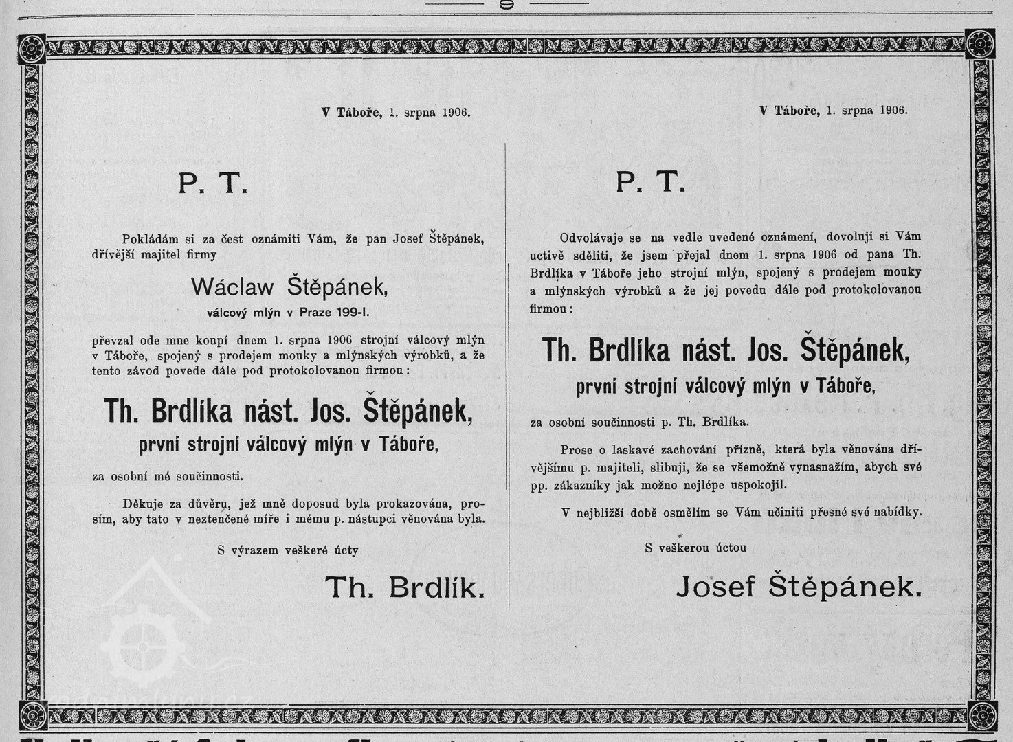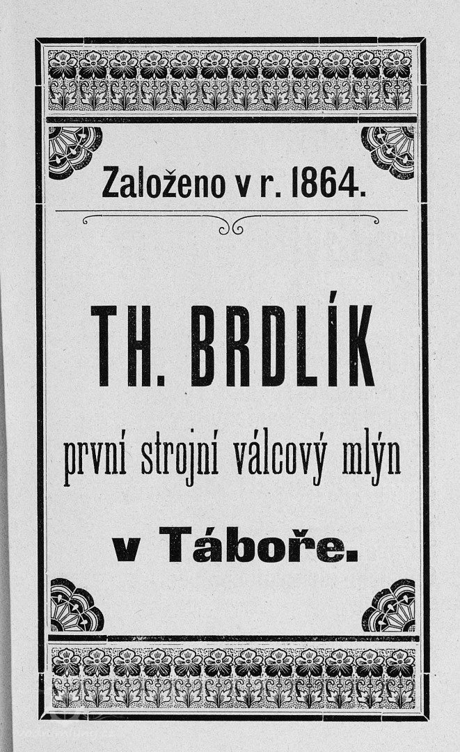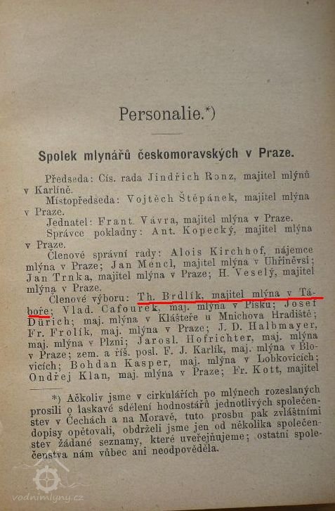 1899 - Th. Brdlík, majitel mlýna, členem výboru Spolku mlynářů česko-moravských v Praze (fr. Duška - Kapesní kallendář mlýnů česko-moravských, r. 1899) (HŠ)