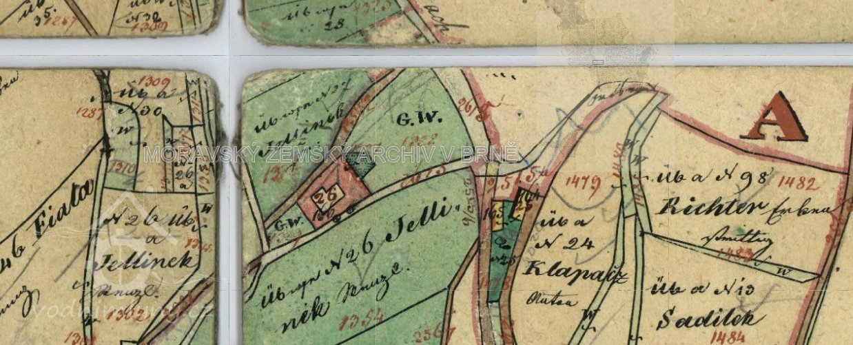 Voda z Kazmírova mlýna (čp. 35) tekla odpadem podél domů v Bobrovské ulici a ústila do nádrže před Jelínkovým mlýnem.