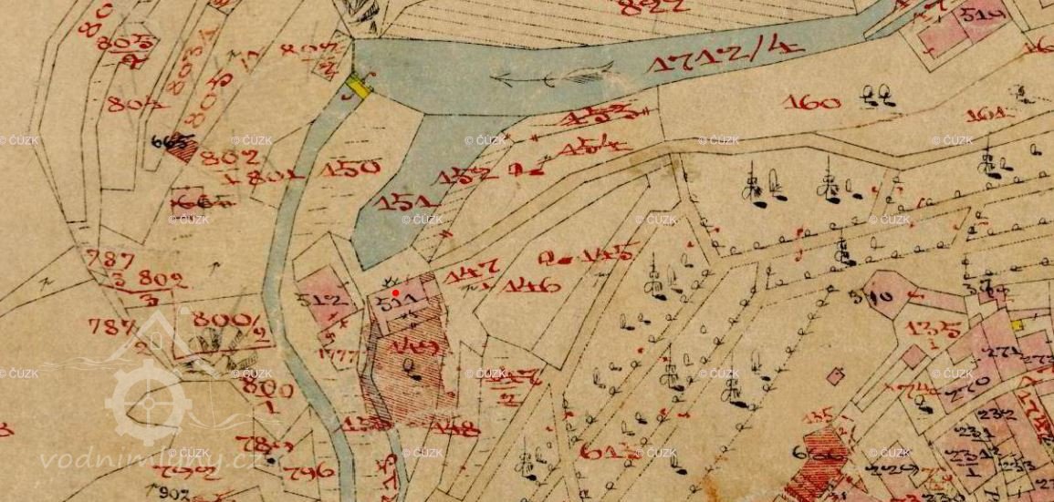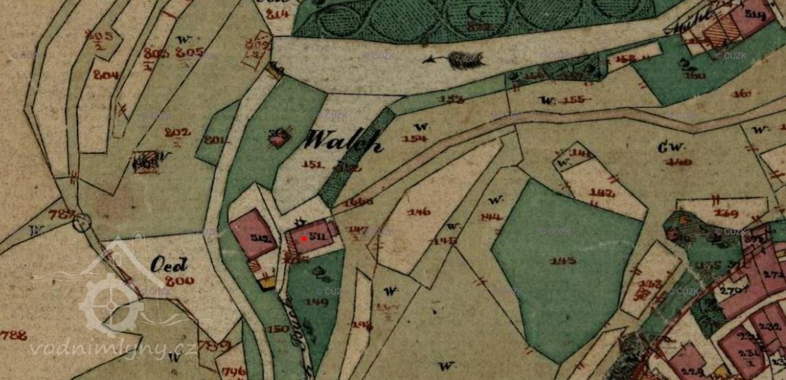 Popis1930: 1 kolo na svrchní vodu, hltnost 0,068 m3/s, spád 3,54 m, výkon 2,2 HP