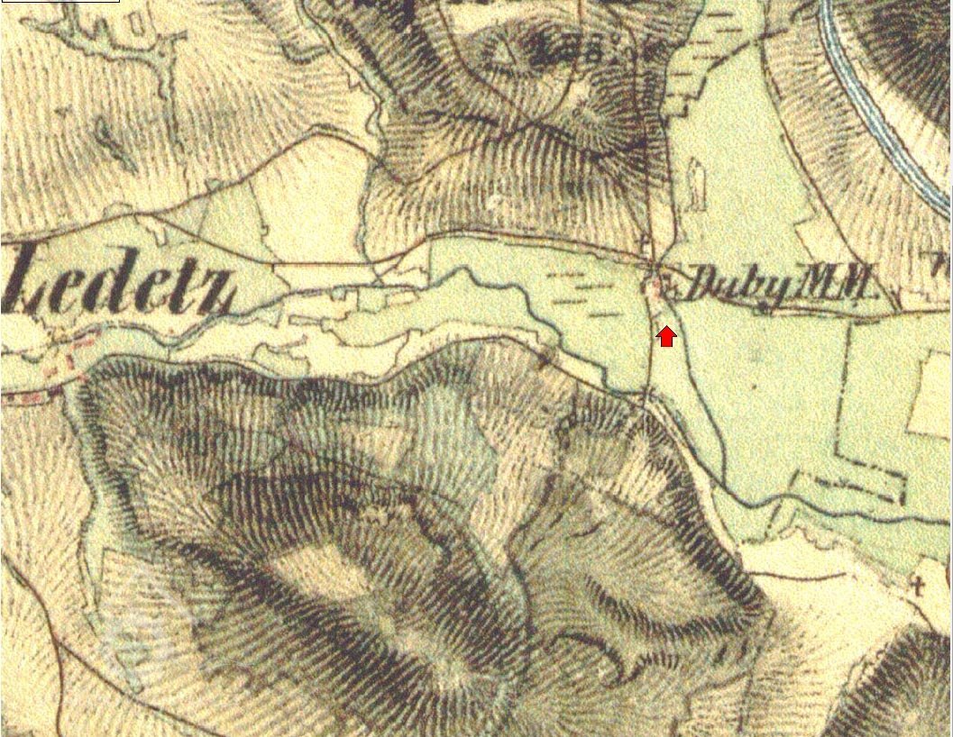 Tento mlýn situovaný cca 800 metrů východně od Ledec jako samota, byl pravděpodobně založen nejpozději na začátku 15. století plaským klášterem v lokalitě zvané „v Dubí“. Po této lokalitě dostává bez ohledu na jména majitelů svůj název – Dubský mlýn.