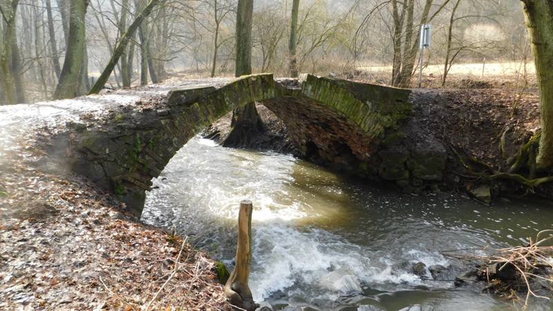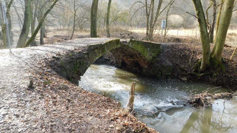 Klenutý kamenný most přes Bobravu na odbočce ke mlýnu, 2014, © Helena Špůrová, (Prvky na obrázku: most, propustek)