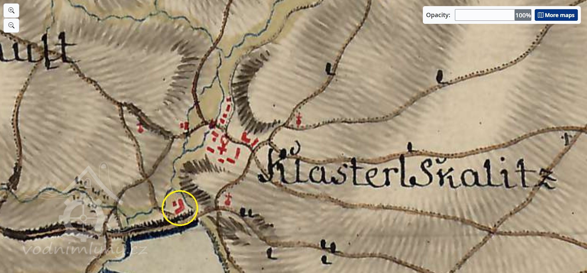 PopisV r. 1930 zde byla Francisova turbína, průtok 0,222 m3/s, spád 5,4 m, výkon 12 k.