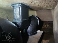 Výkon turbiny 40 Hp (30kw) Průměr oběžného kola 690mm, 18 lopatek Hydraulická účinnost 0,8 - efekt 75 %