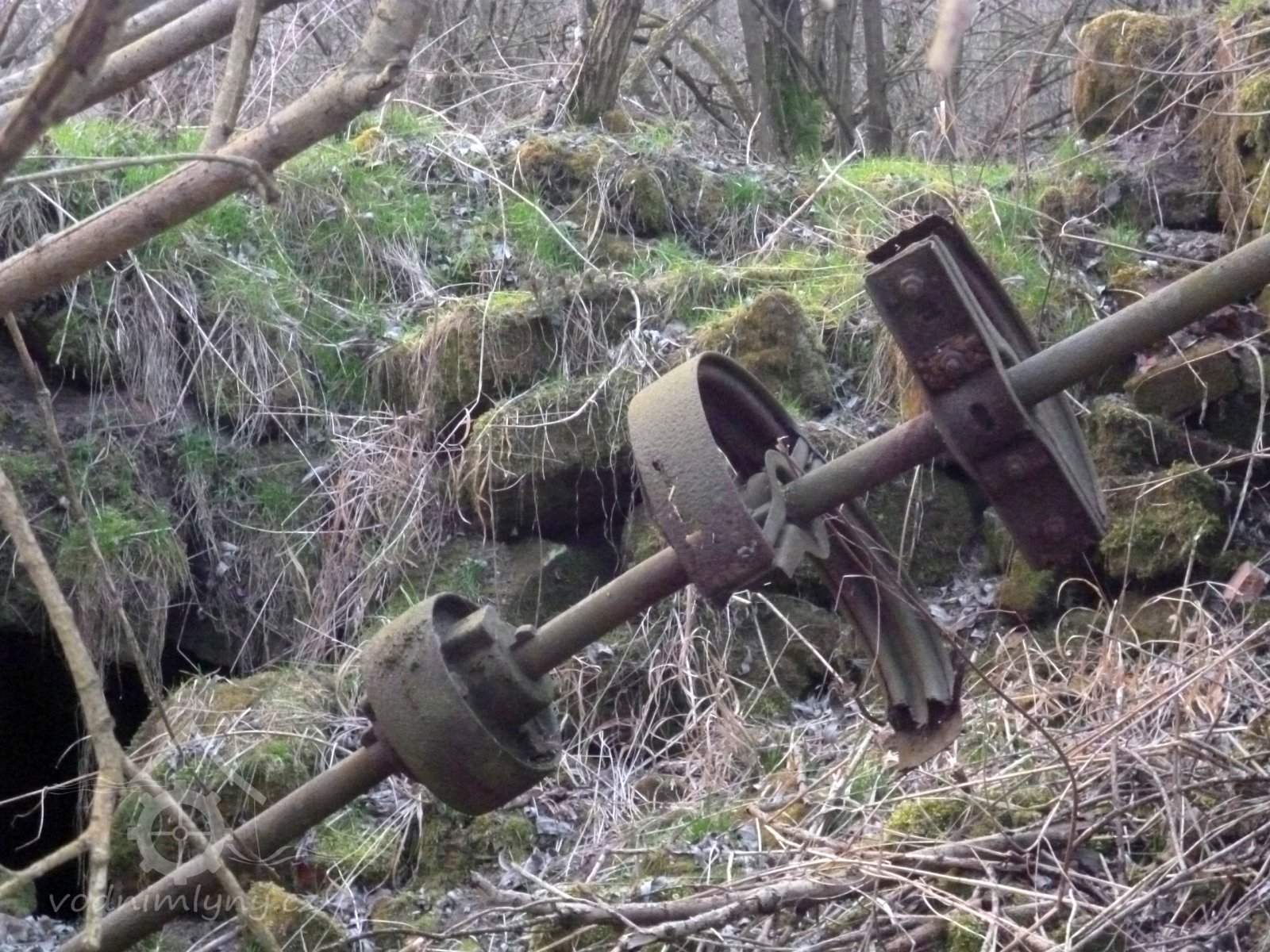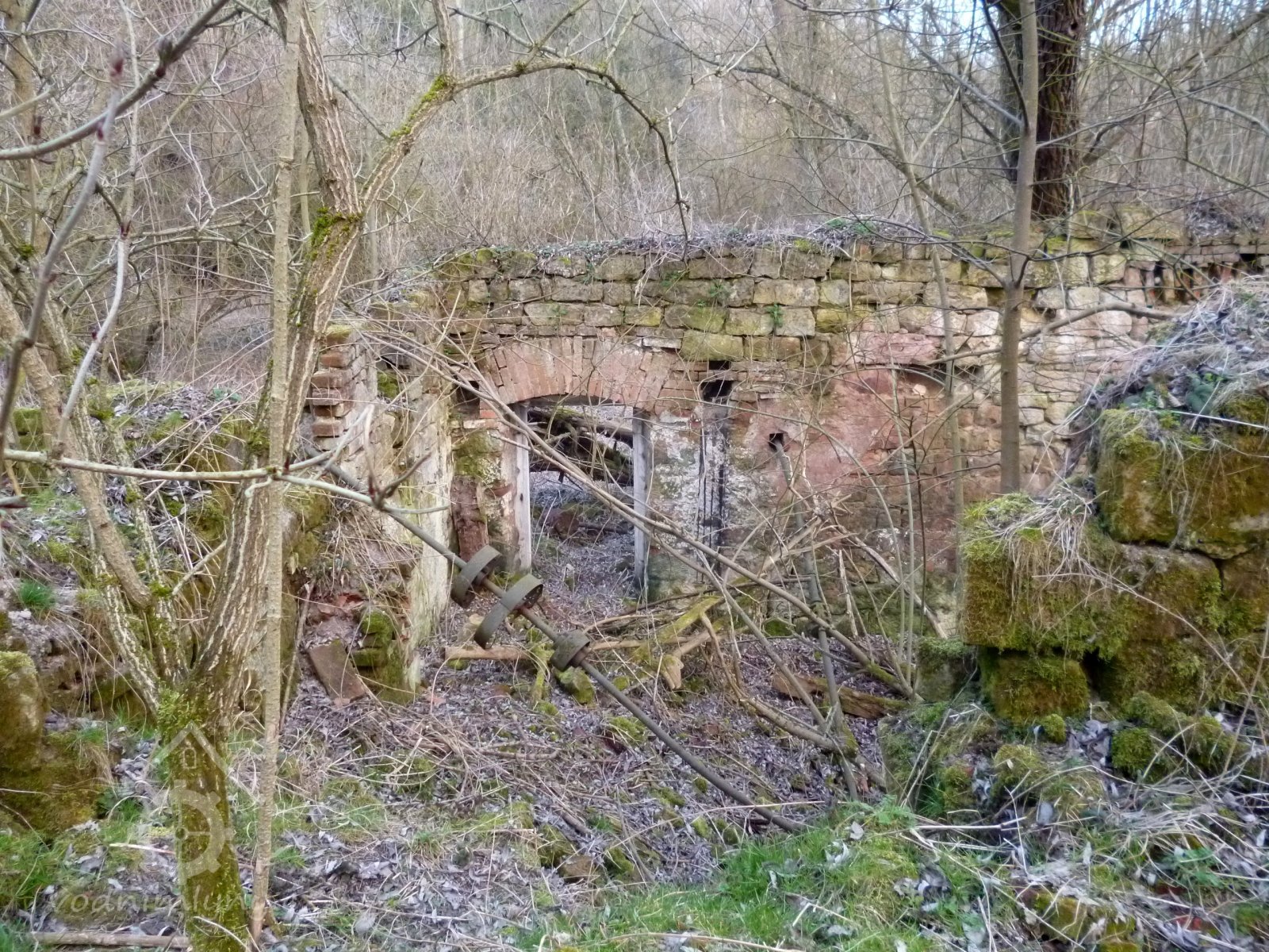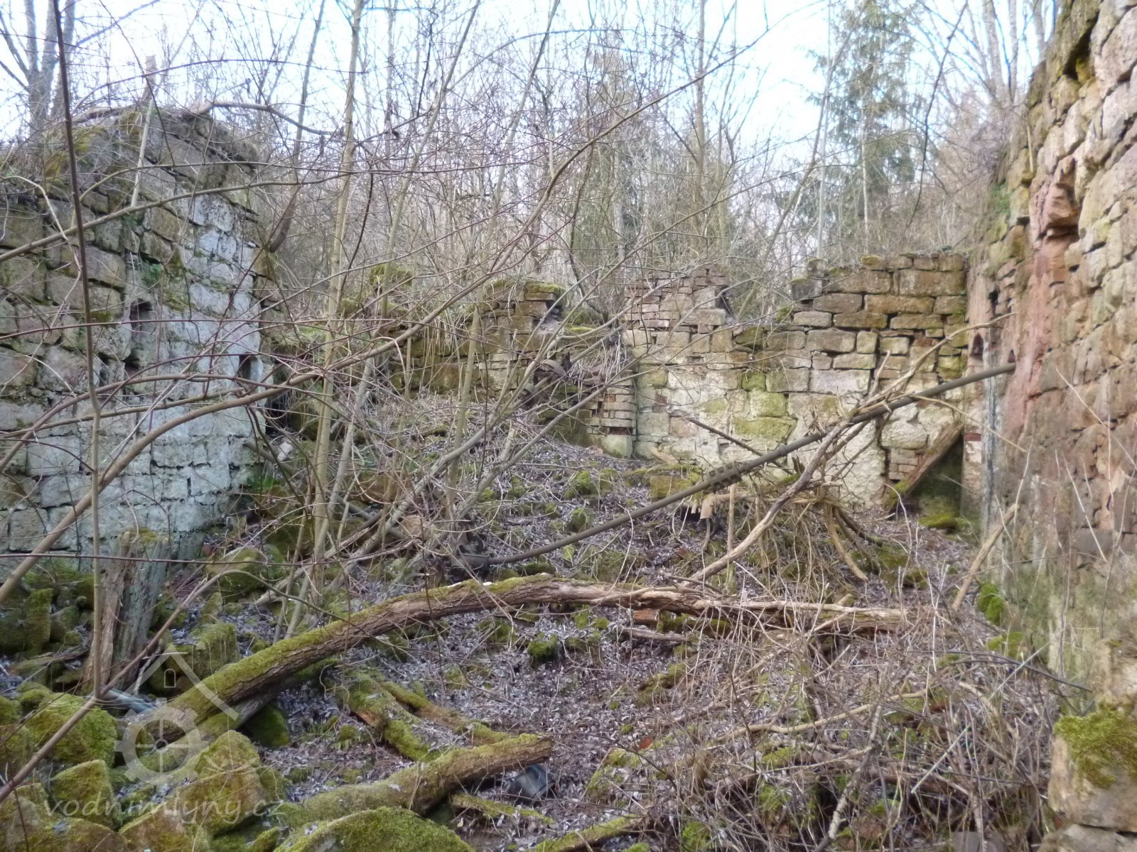 V troskách mlýna je mlecí kámen a zbytky dalšího zařízení