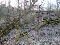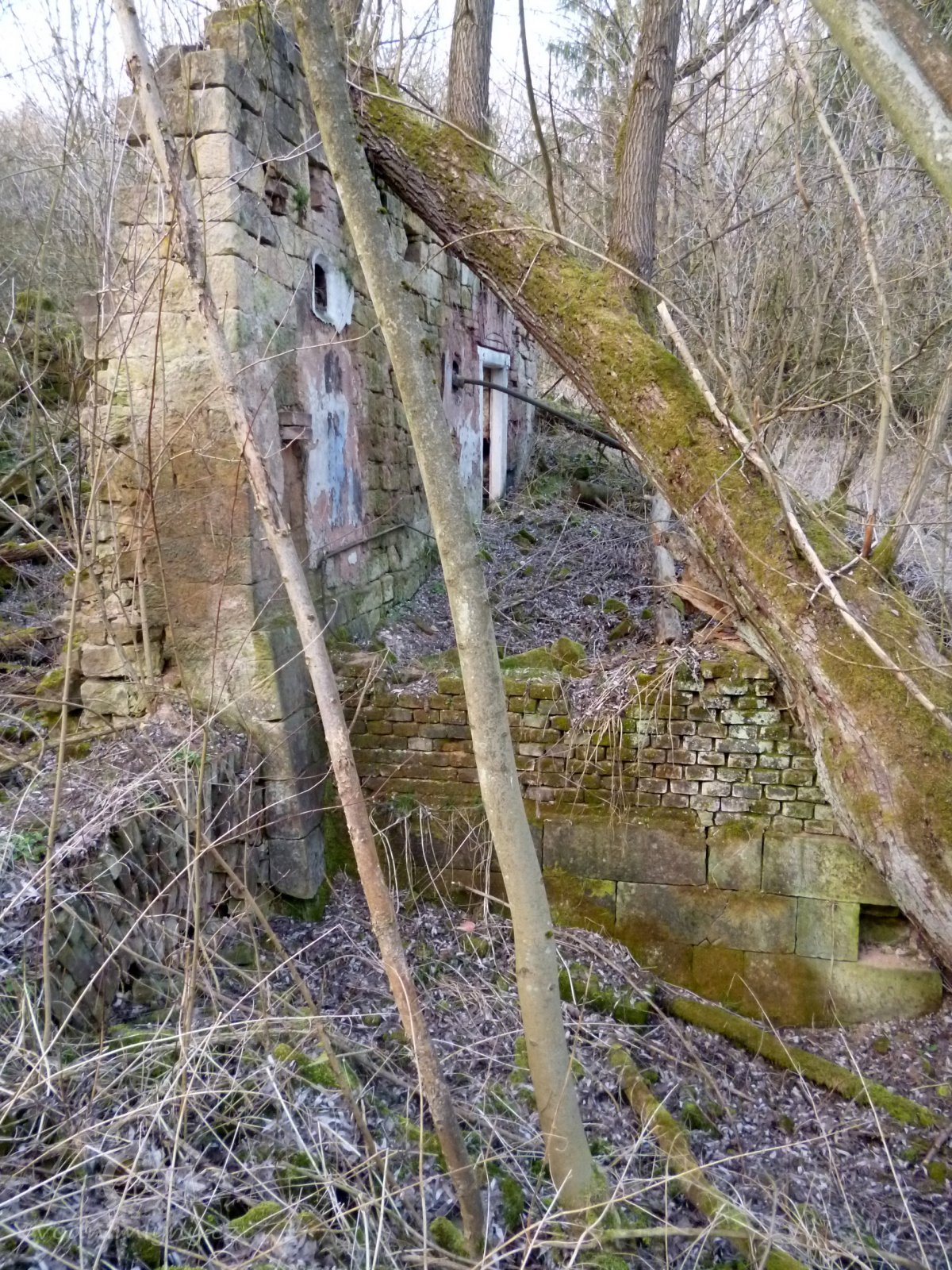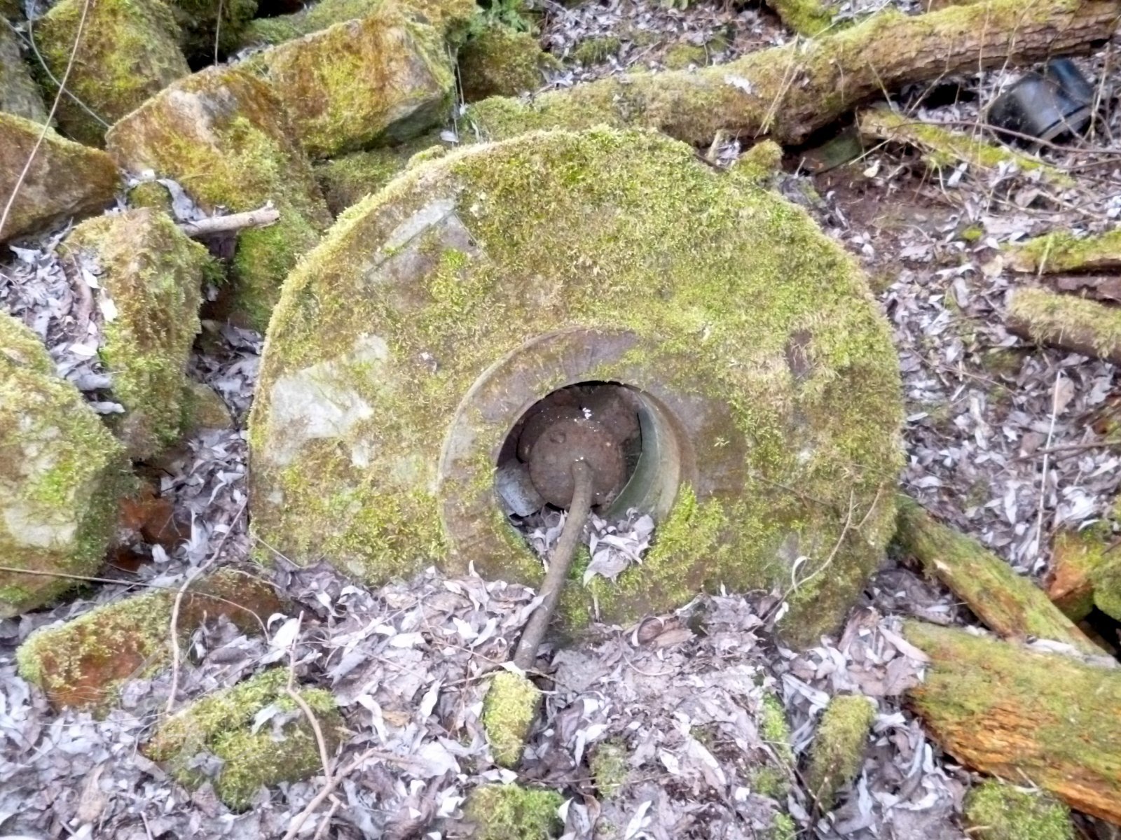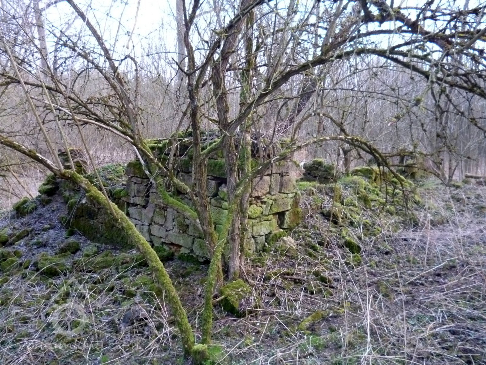 V troskách mlýna je mlecí kámen a zbytky dalšího zařízení