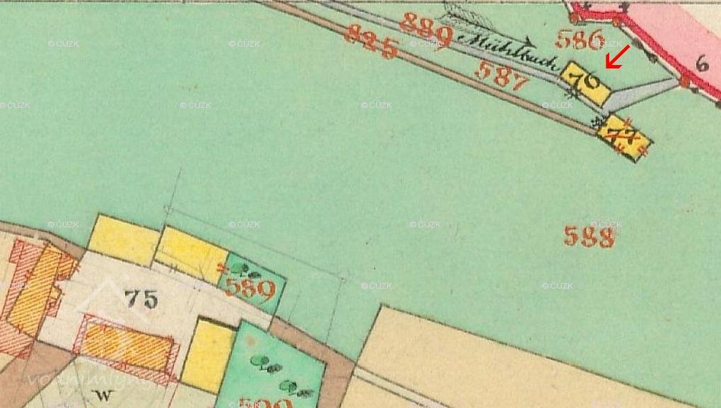 Krásně dochovaná budova mlýna ve stylu šumavské roubenky s funkčním vodním kolem stojící v údolí Volšovky pod králováckým válečným dvorem Busil. Na indikační skice označen pouze jako Mühle.