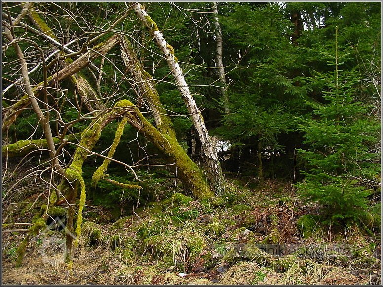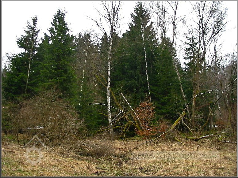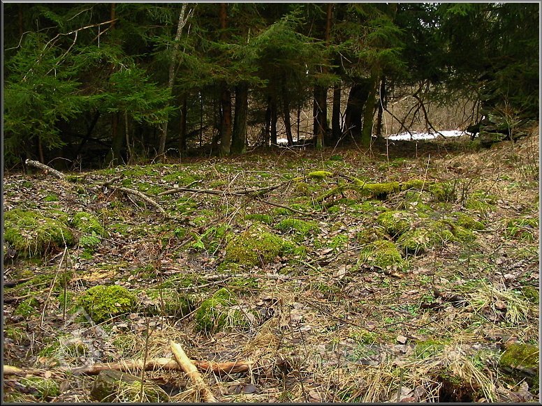 Mlýn stával a jeho ruiny jsou ukryty v onom stromoví mezi smrky, 03 2012, © Petr Bílek