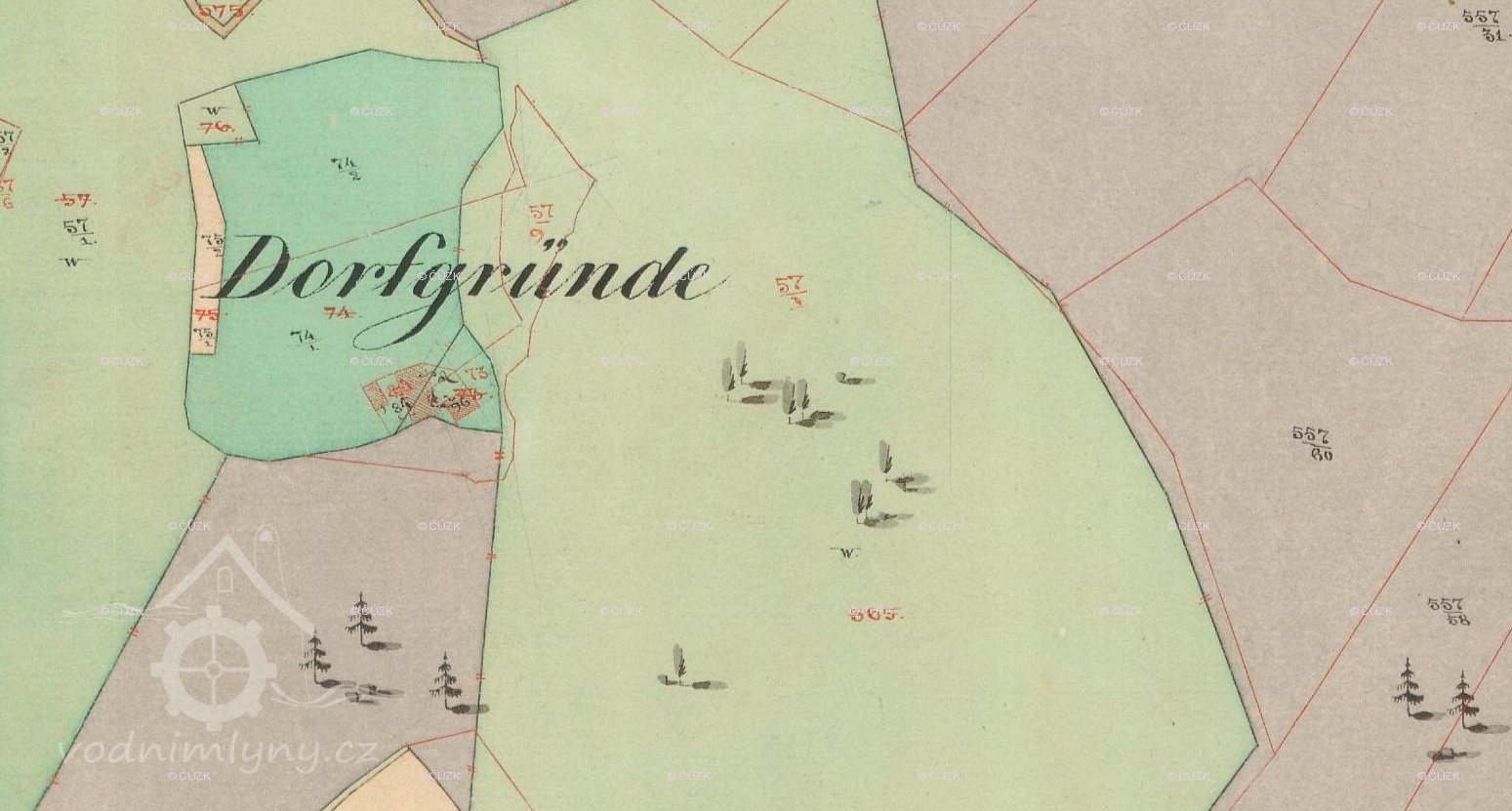 Císařský povinný otisk, výřez, 1838, © http://archivnimapy.cuzk.cz/