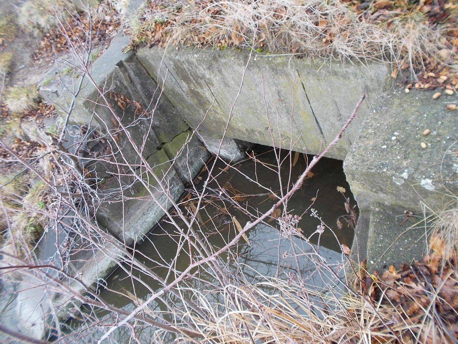 Vtok do náhonu z roku 1947 přímo z rybníka Čertík s kamennými schůdky po straně a dvojicí drážek pro fošny. Voda byla pouštěna přímo přepadem v tělese hráze, takže mlýn nepotřeboval dlouhý náhon.