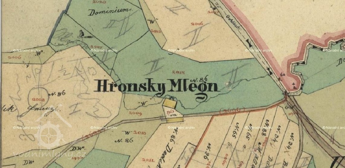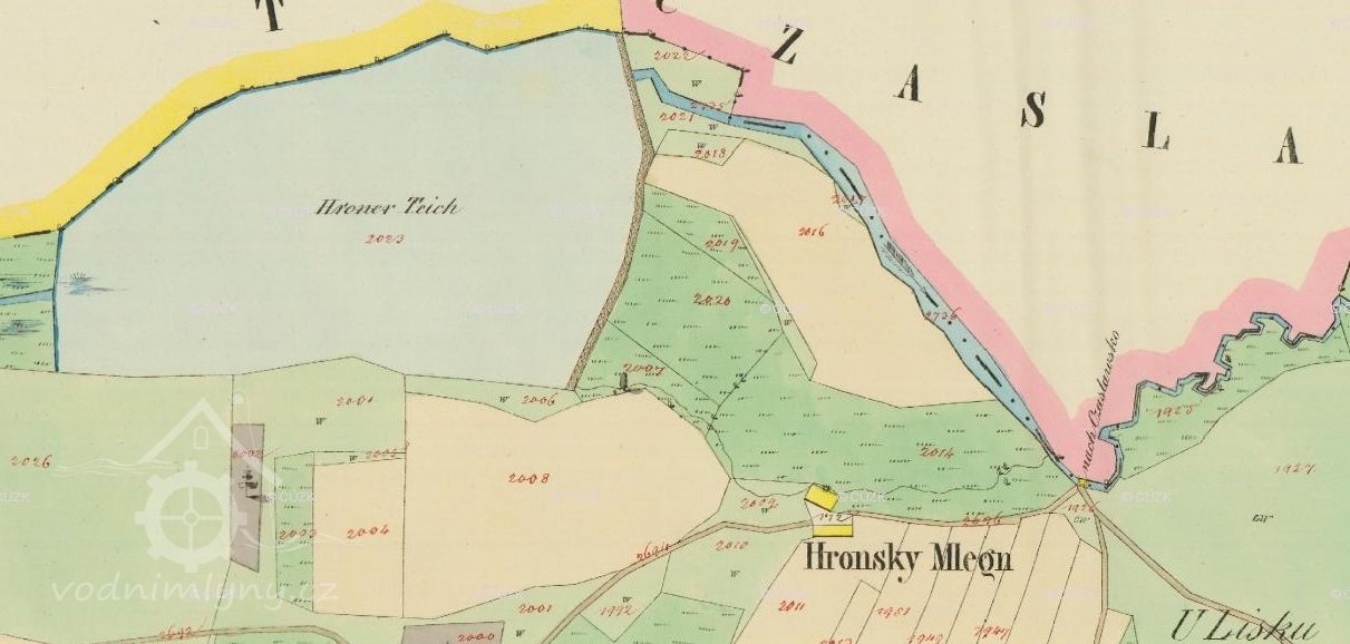 Tercio: Bude jeho povinnost a on mlynář se obzvláště zavazuje, by ten nad mlýnem ležící a mil. vrchnosti patřící tak zvaný Hronský mlejnský kaprový rybník v dobrém stavu zachován byl, nikoli velkým nadržovaním vody, neb velkým vypouštěním vody, a to přes vysazené znamení nepřekročiti a vřdy bedlivý pozor míti, kdyby nějakých nenadálých přívalů se domníval, neb takové se vyskytnouti mínily, ihned včasně vodu z rybníka vypustit a takové nebezpečí na kancelář oznámit, neb jinak by on mlynář, vymiňujíc si casum fortuitum (= nenadálou příhodu) za zkázu neb záhubu téhož rybníka zodpovídati musel.