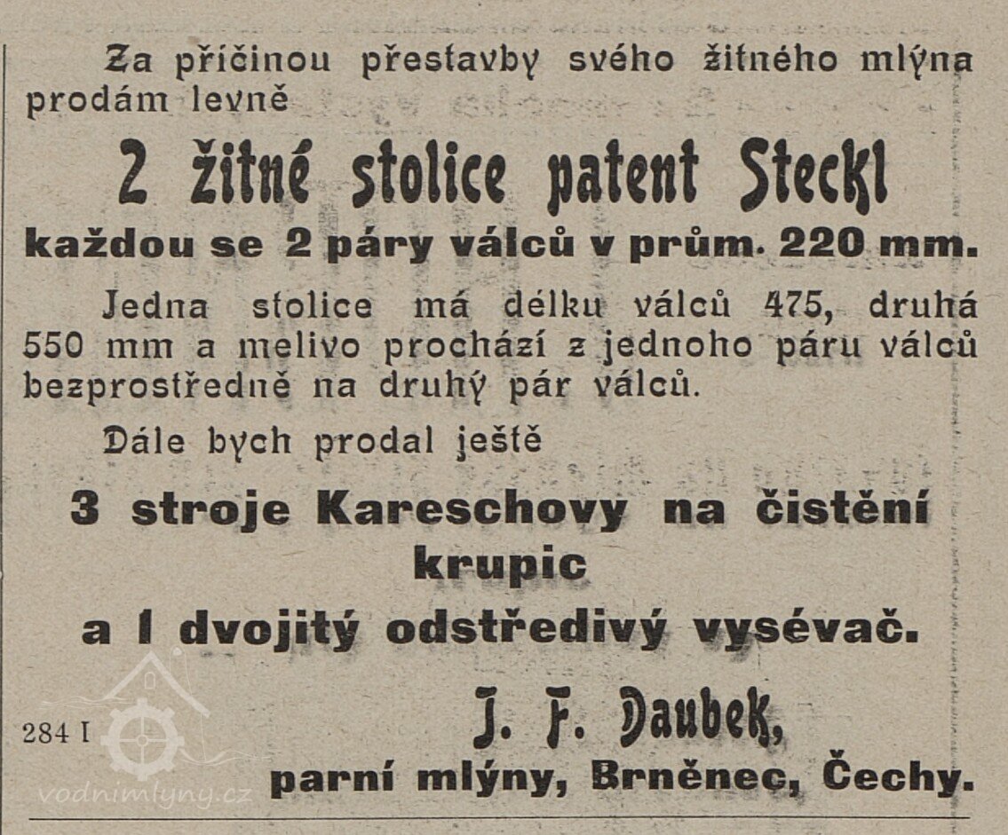 1873 převzal syn Josef Šebestián Daubek, připojil loupárnu prosa a žitný mlýn