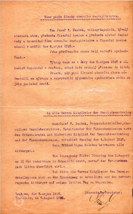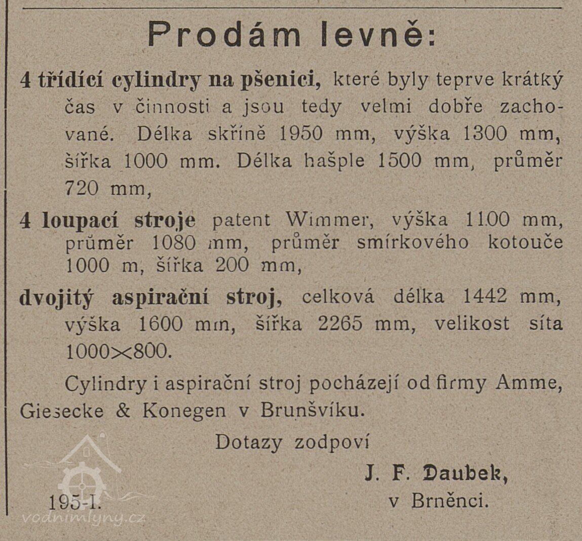 1935 zemřel Josef F. Daubek, mlýn vede nadále jen Jiří A. Daubek