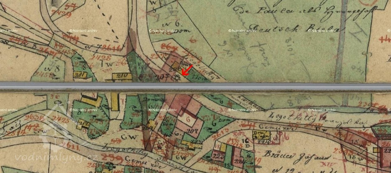 Veškeré vodní parcely řeky Svitavy, od hranic obce v České Dlouhé až na hrannici osady Půlpecen, včetně všech mlýnských náhonů a jalových struh o výměře 4 ha, 89 a + 1m2, ptom také bělský potok od hranice obce Německé Bělé, konče vtokem do řeky Svitavy, jakož i strouha s prameny z březovského nádraží, včetně vtoku do řeky Svitavy u továrny čp 15, patří majetkově firmě Löw Beer, kterýžto majetek byl od bělského panství zakoupen v roce 1917 v ceně 24. 500 korun.