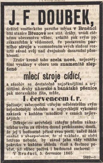 Nový mlýn byl spuštěn 1. 5. 1858, v živnostenském listu ze dne 15. 6. 1858 se uvádí, že se jedná o umělý mlýn, dle Amerického způsobu mletí, se zemským továrním oprávněním pro zřizování vlastních režijních skladišť a prodejen hotových výrobků, jejichž souhrnný počet za následujících 20 let vzrostl na 75 skladišť a prodejen.