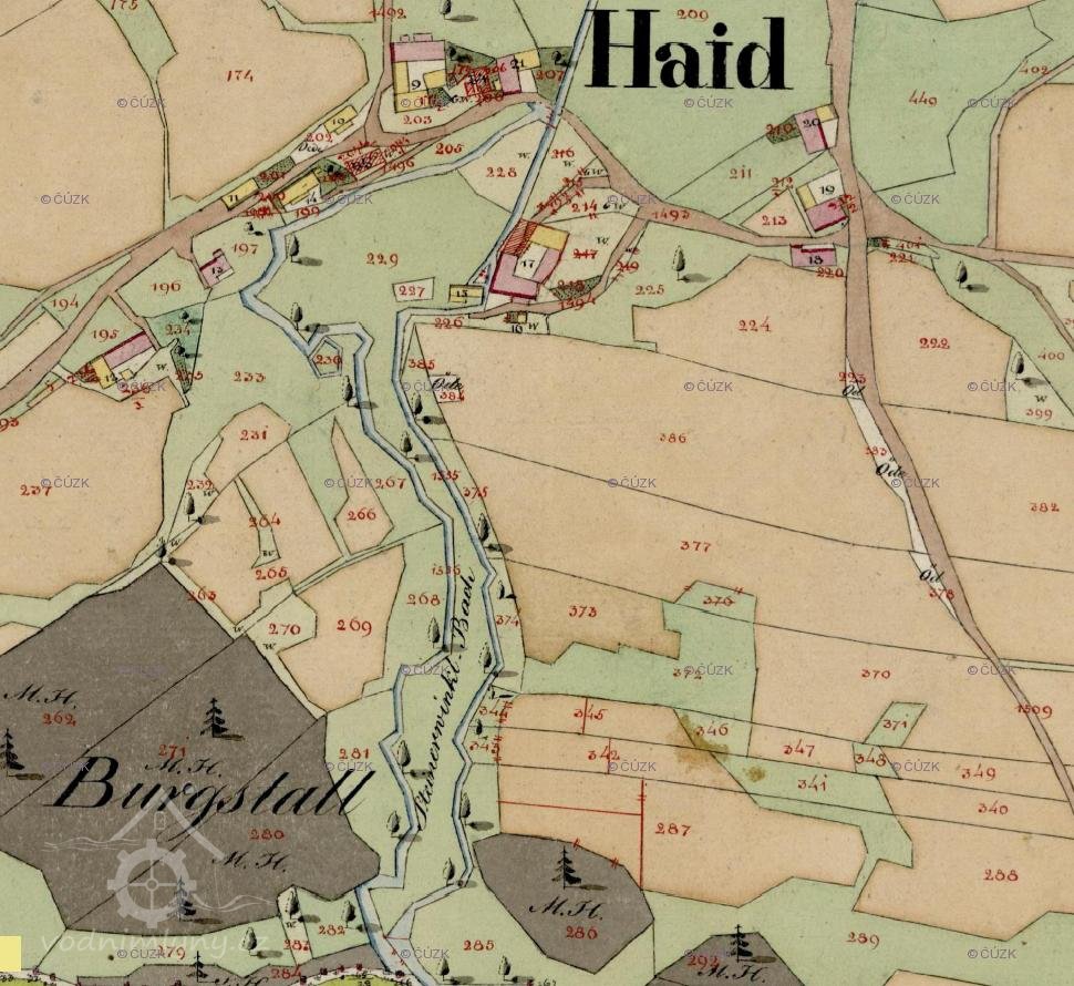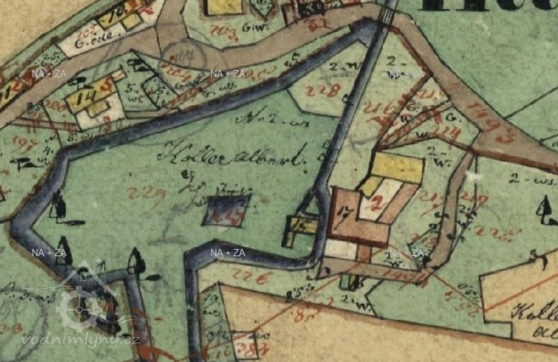 Ovšem při pohledu na katastrální mapu nevede k parcele 2/1 žádný náhon a ani v terénu se mi ho v 11/2016 nalézt nepodařilo.