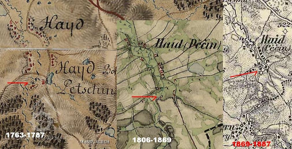 Problém je totiž v tom, že pod Pěčín/Haid tenkrát spadaly ještě dvě další obce a to nedaleká Trautmann/Trutmaň/Mezilesí a Hrádek/Häusless.