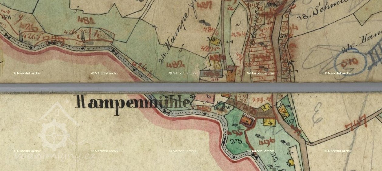 V roce 1843 vlastnil mlýn Anton Franz Hampe.