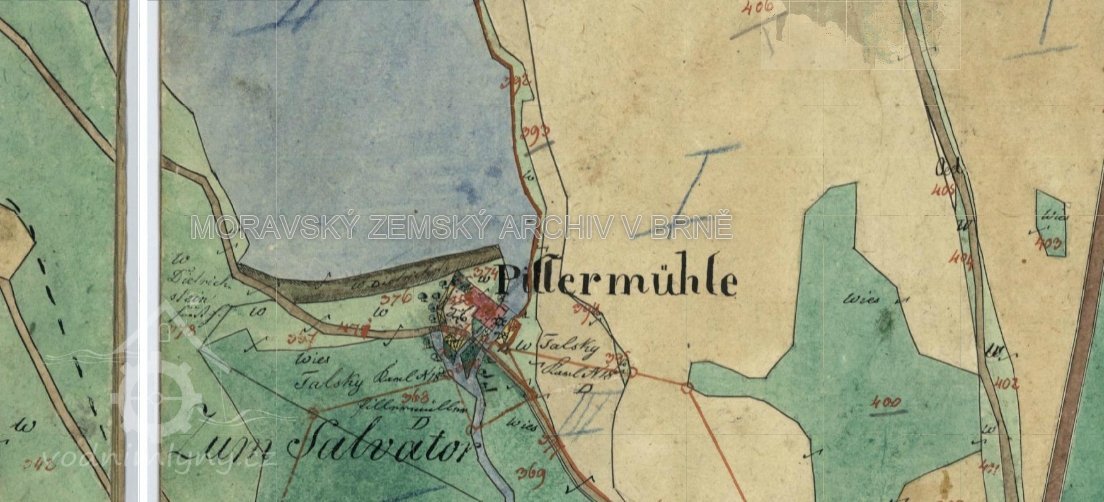 Mlýn stál pod Pilským rybníkem, ze kterého vznikla vodní nádrž Pilská.