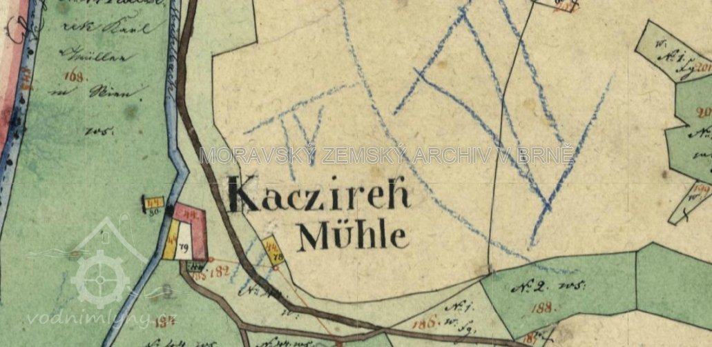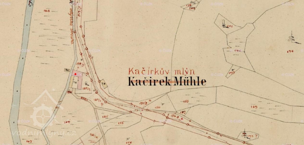 1695 mlynář Václav Kačer platí ouroku o sv. Jiří 1 zl. 13 kr. a o sv. Václavu 1 zl. 13 kr., dále odvádí 6 slepic a 30 vajec, mlýn měl 3 složení, pilu a stoupu, k mlýnu patřil 1 lán pole