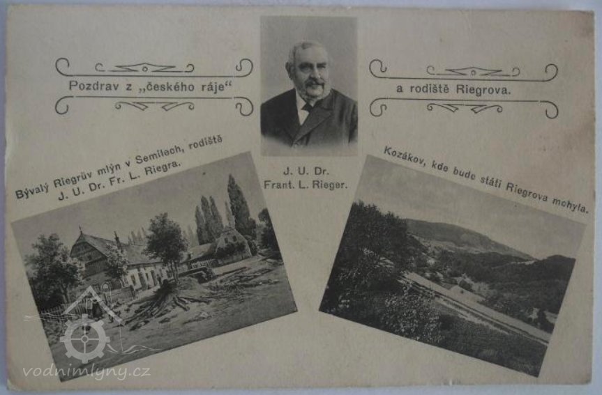 10.12.1818 - se ve mlýně jako jejich jediný syn narodil František Ladislav Rieger (+3.3.1903 v Praze) - známý český politik 19. století a poslanec říšského sněmu ve Vídni, vyučen mlynářem a sekerníkem, 4.10.1838 přijat do cechu mlynářského, při tom si však poranil ruku