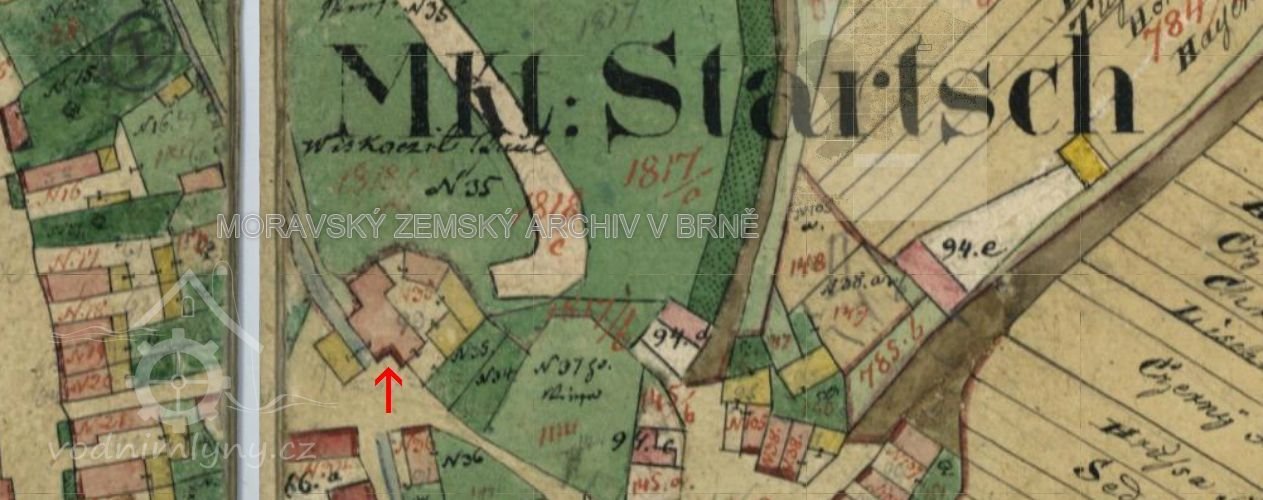 R. 1881 byl majitelem Jan Vyskočil. Pohon zajišťovala tři vodní kola o průměru 3,8; 3,6 a 3,64 m.