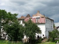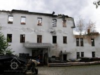 před požárem 1890 dle vyprávění pamětníků zděná rozlehlá budova s vysokou valbovou střechou, krytou šindelem