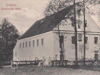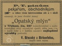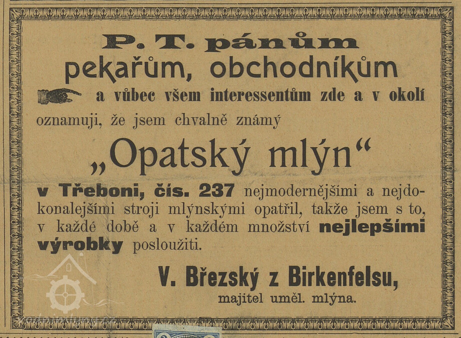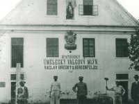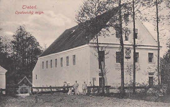 hlavní, jižní průčelí s nápisem "Opatovický umělecký válcový mlýn, Václav Břeský z Birkenfelsu", cca poč. 20. st., © z archivu rodiny Břeských (Vojtěšky Försterové)