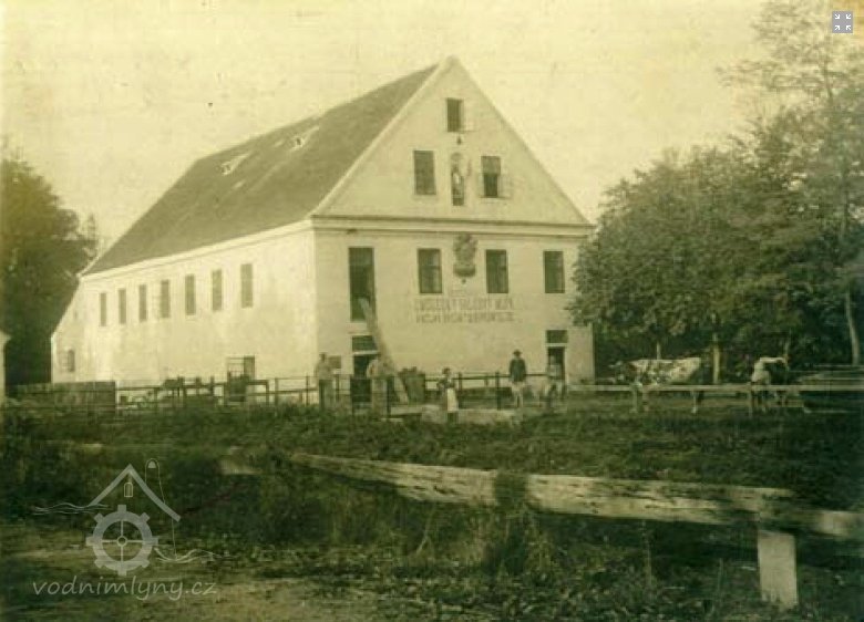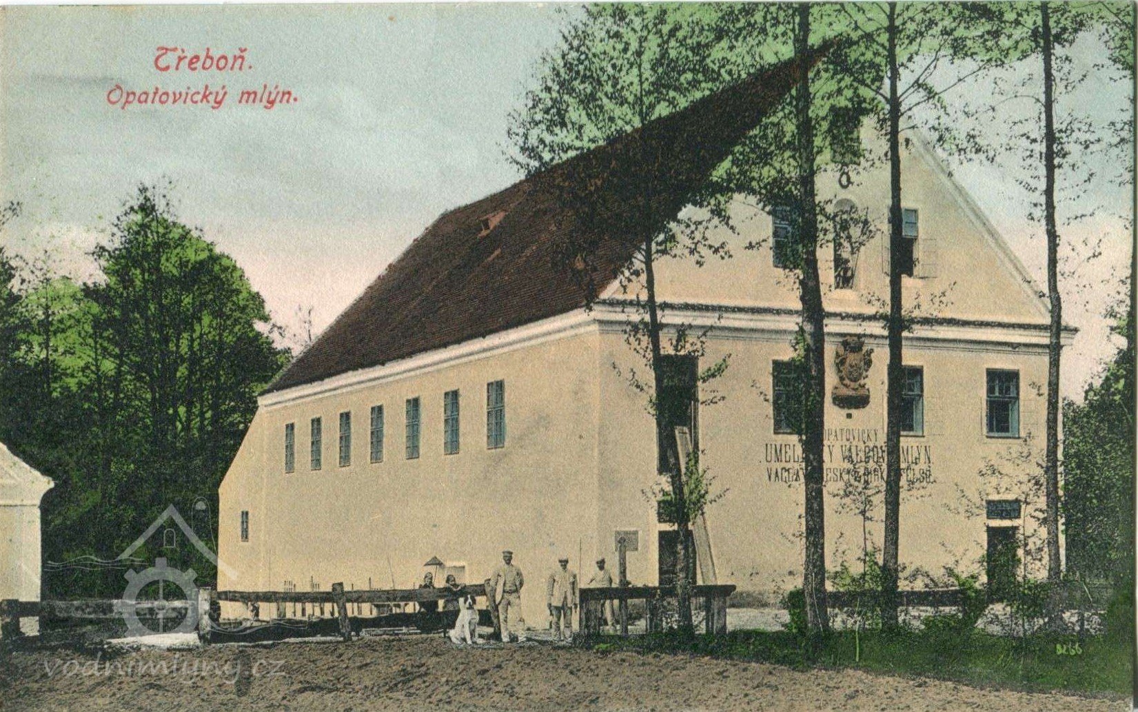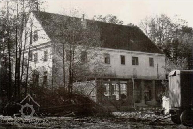 mlýn z jihozápadu; vzadu je vidět část přistavěného domku, cca poč. 20. st., © foto archiv rodiny Břeských, z publikace R. Novákové "Opatovický mlýn na Zlaté stoce u Třeboně"