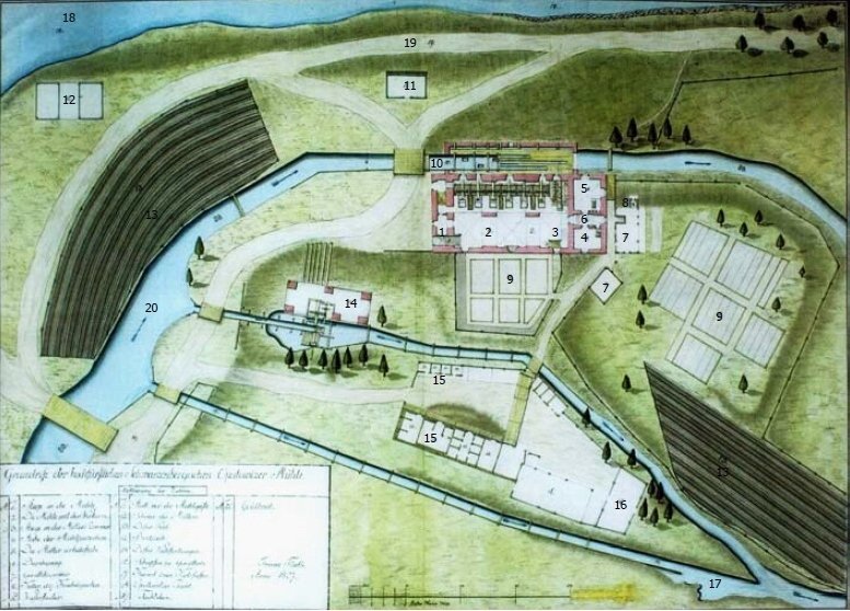 Půdorysný plán Opatovického mlýna (SOA Třeboň, VsT, mapa č. 3538), 1807, © Frant. Flath