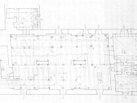 bývalá provozní polovina 1. patra mlýna; ve stropě zaslepené otvory pro technologii, 1960-62, © Karel Skopal st., z publikace R. Novákové "Opatovický mlýn na Zlaté stoce u Třeboně"