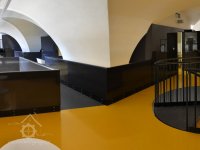 bývalá provozní polovina 1. patra mlýna; ve stropě zaslepené otvory pro technologii, 1960-62, Karel Skopal st., z publikace R. Novákové "Opatovický mlýn na Zlaté stoce u Třeboně"