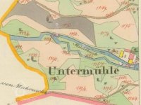 Mlýn je zcela jasně vyznačen na I. vojenském mapování. Na II. a III. vojenském mapování chybí. Stavba je dokreslena na Indikační skice z roku 1826. Na Císařském povinném otisku zakreslena není. (RŠ)