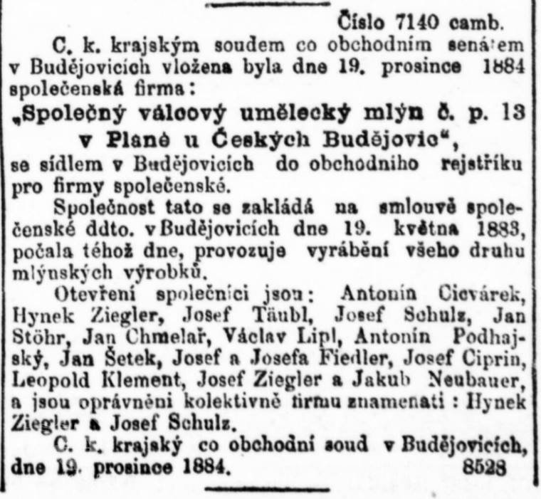 Příjmení mlynářů působících na mlýně:
