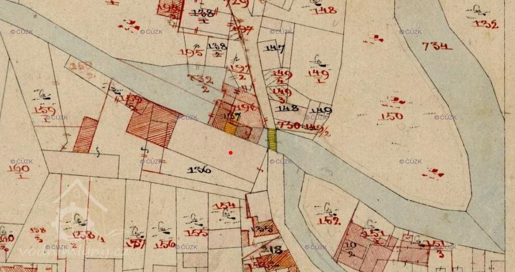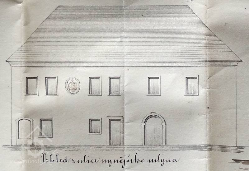 Mlýn stál na levé straně Mlýnské ulice cca 150m od zámecké kaple.