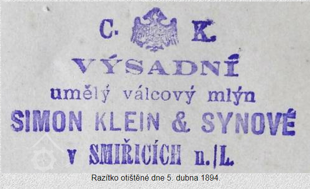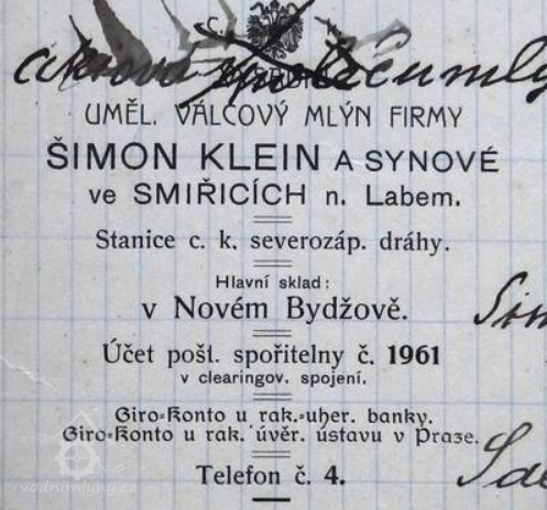 Za vedení p. Šimona Kleina a jeho syna Theodora byl uveden mlýn v rozkvět, na čemž má zásluhy p. Semrád Václav, který v závodě tomto po dobu 43 let jako stárek pracoval.