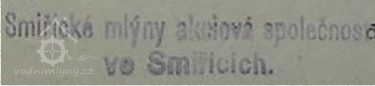 1930, 1939 - Smiřické mlýny, akciová společnost (RR)