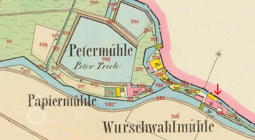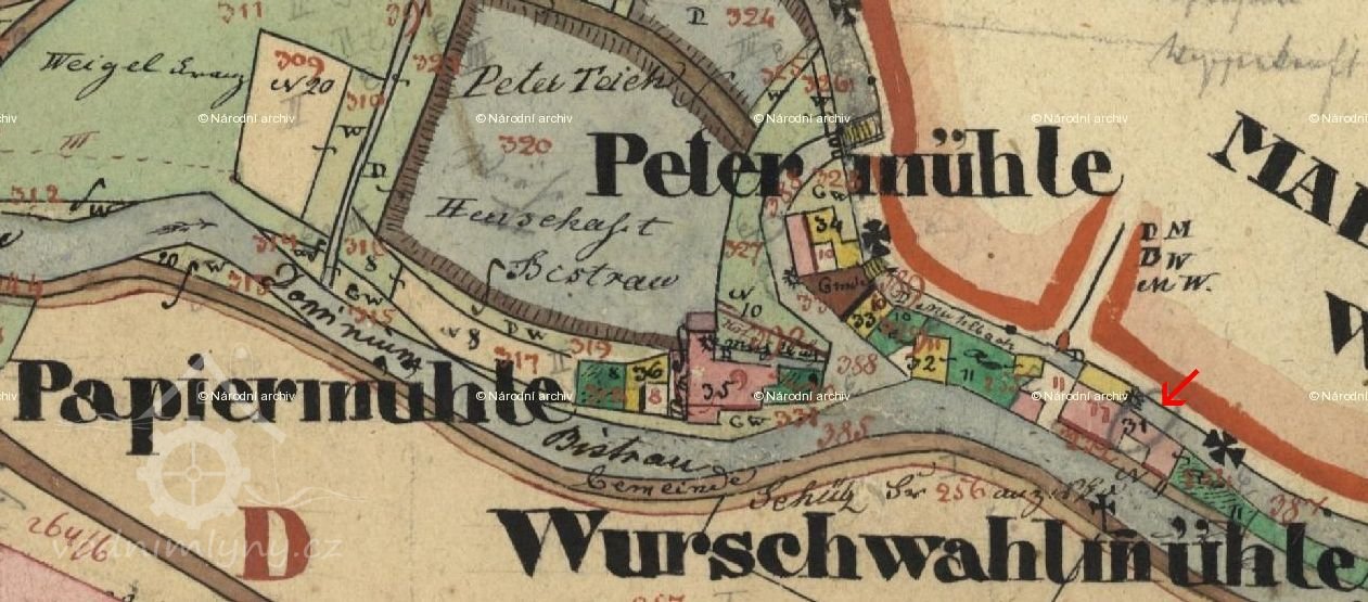 Mlýn měl čp. 11. V roce 1930 vlastnil mlýn a pilu Ant. Roethlein. (RŠ)