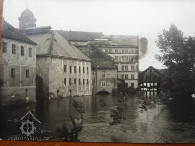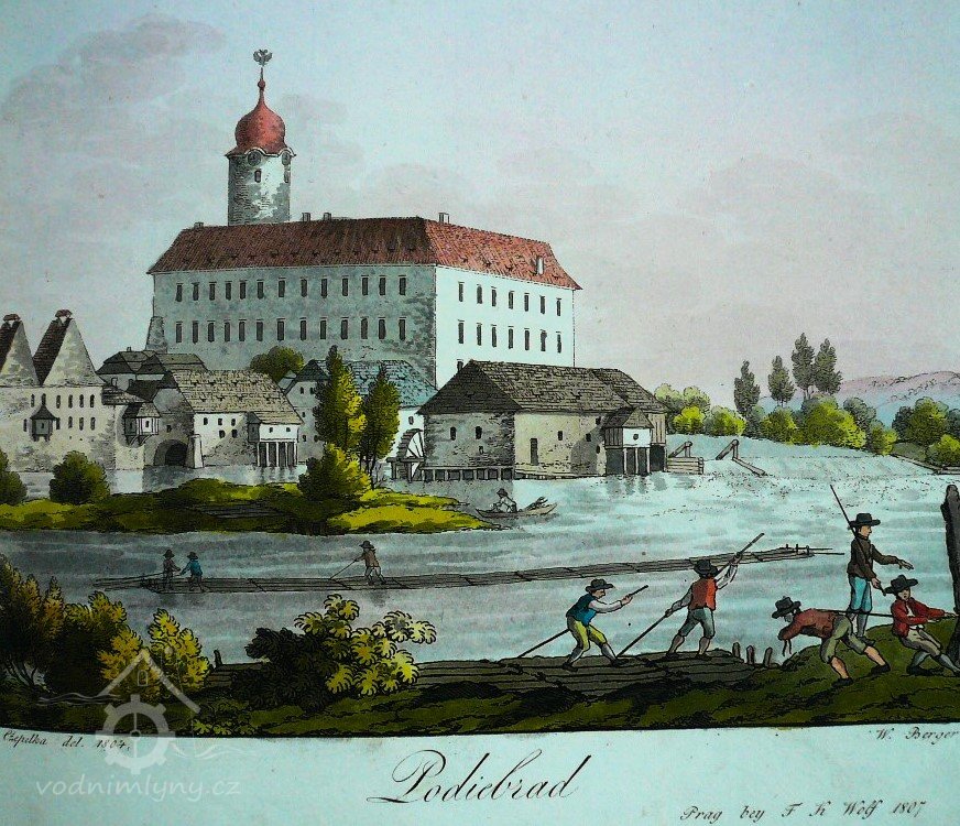 poč. r. 1542 mlýn i s vodárnou vyhořel, 10.3. na prosbu zástavních držitelů poděbradského panství, poručníků po  Janu st. Trčkovi z Lípy, poskytnuto na opravu 1.020 kop gr. čes. Mlýn měl tehdy 11 kol, 20 stup a 2 pily.  (viz příloha)