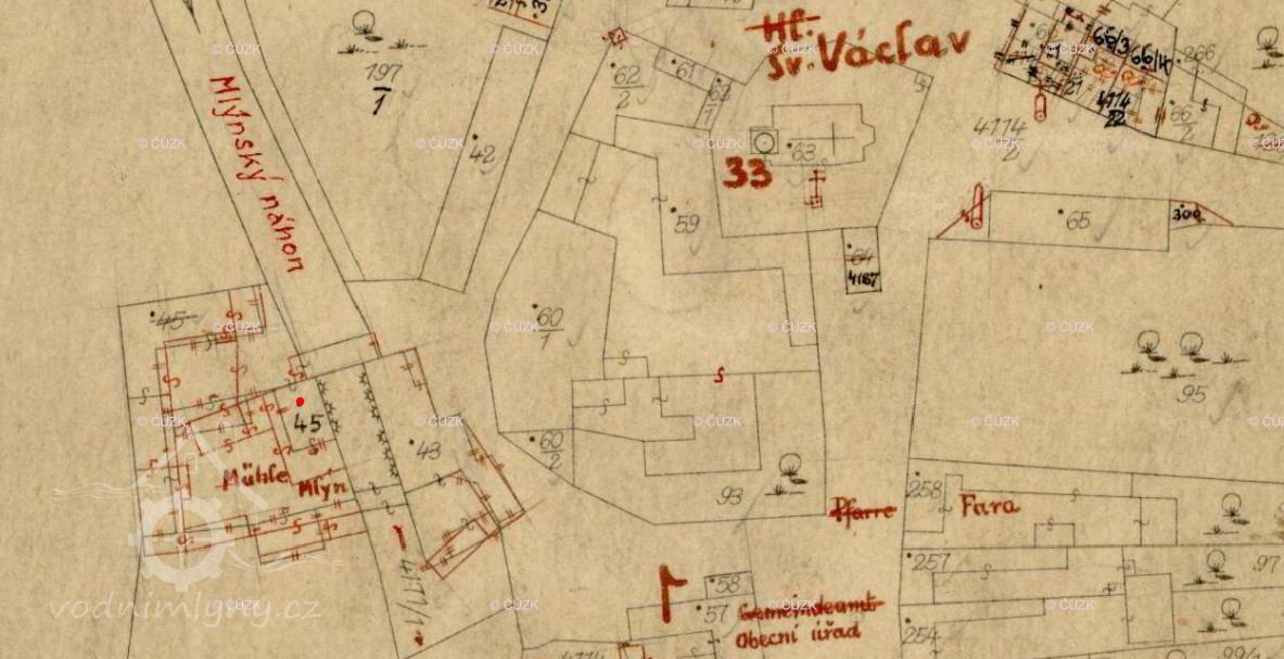 4. V této souvislosti doporučujeme k podrobnějšímu přezkoumání historický vývoj objektu, který se nachází přes vodní náhon - p. č. st. 45/3. Domníváme se, že se jedná o objekt, který byl provozně spjat s budovami mlýna.