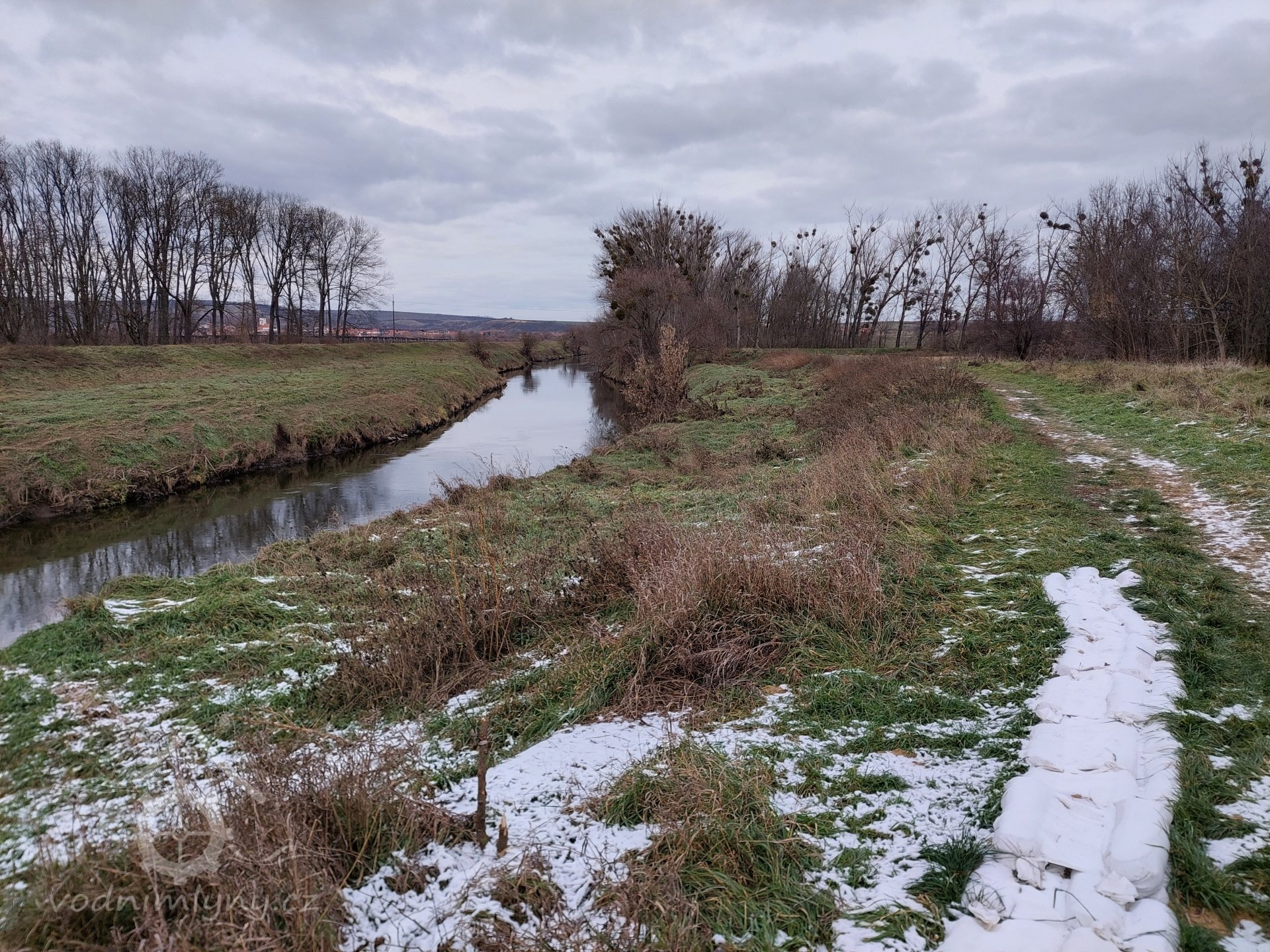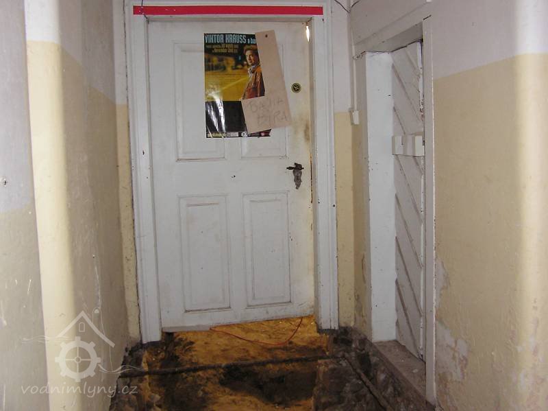Voda ke mlýnu tekla dnes zasypaným náhonem od jezu nad mlýnem. Jez byl v prosinci r. 1946 vahou plujících ker zničen - info. H. Stoklásková
