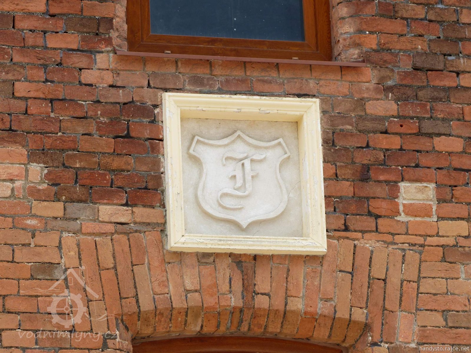 Na průčelí mlýna je novodobý znak-iniciály majitele.