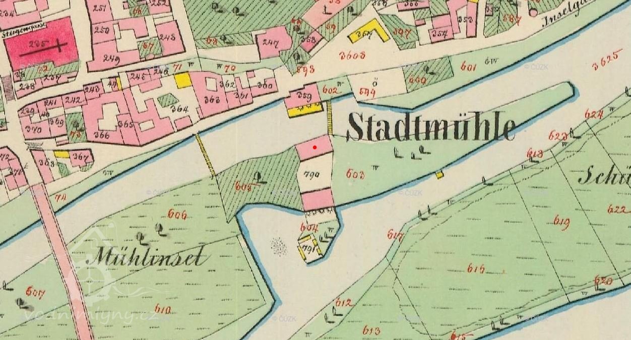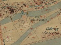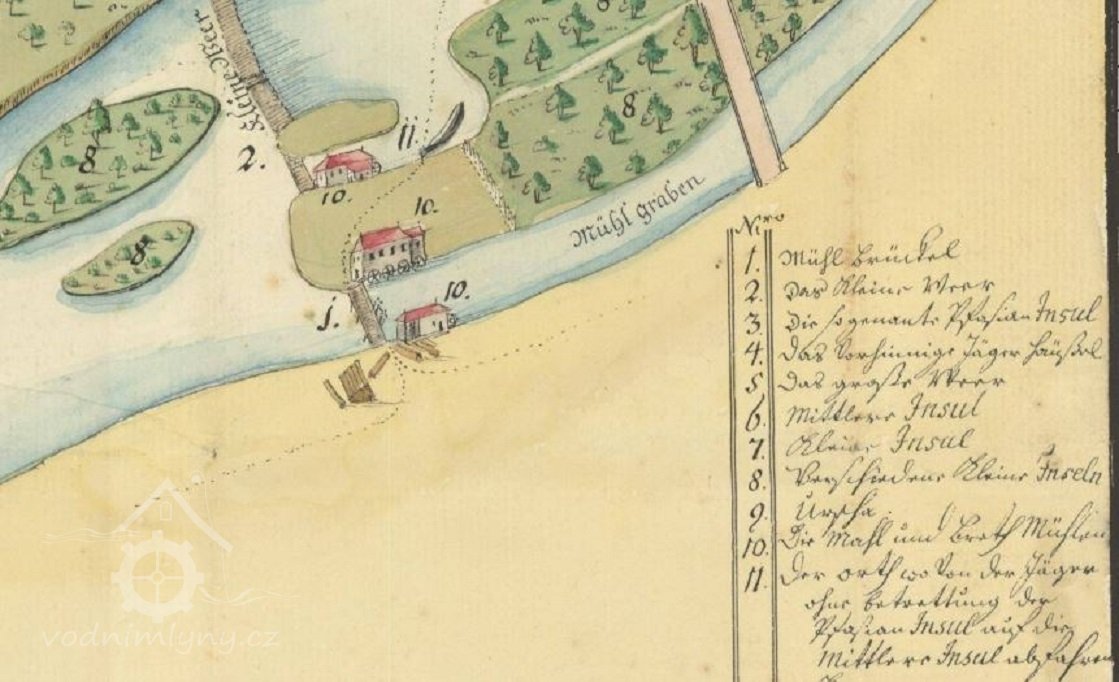 Kdy byl mlýn na ostrově postaven není zcela jasné, ale je zachycen již na dobové mapě z roku 1726.
